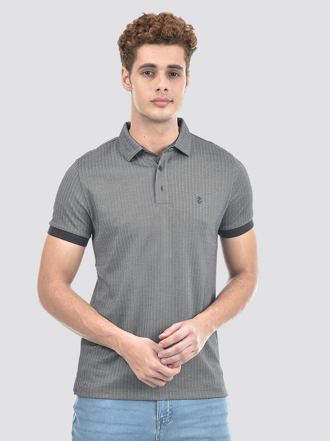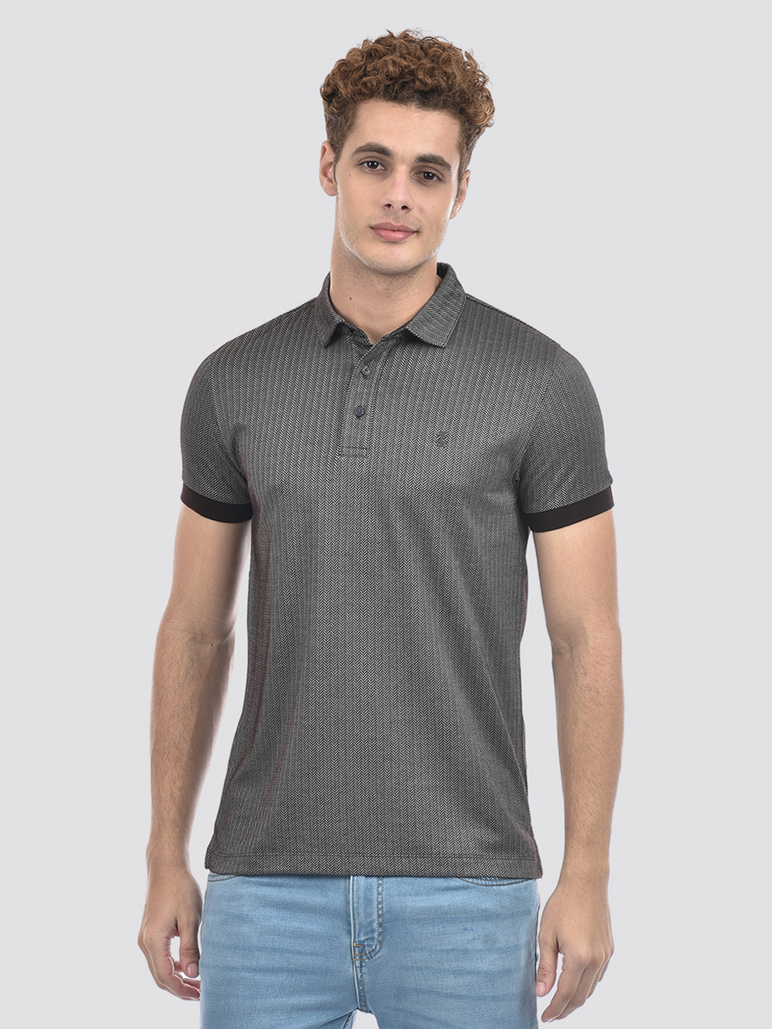 Izod Men's Half Sleeve Self Design Beige Polo T-Shirt