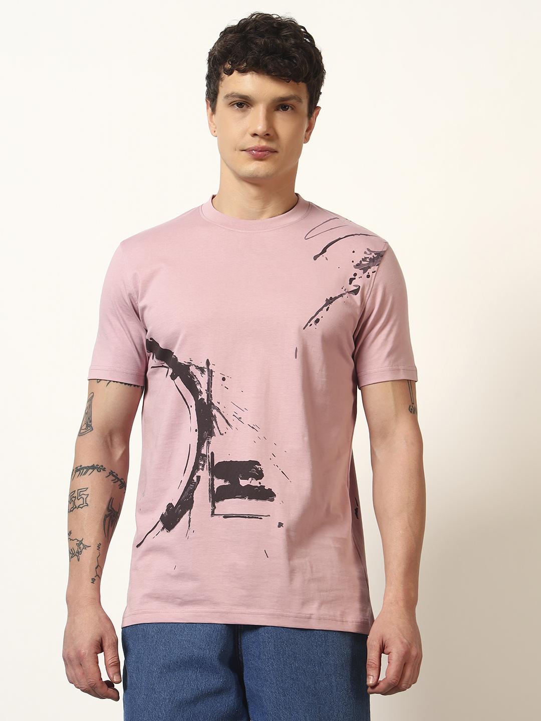 Oneway Men Printed 100% Cotton Regular Fit Yellow T-Shirt