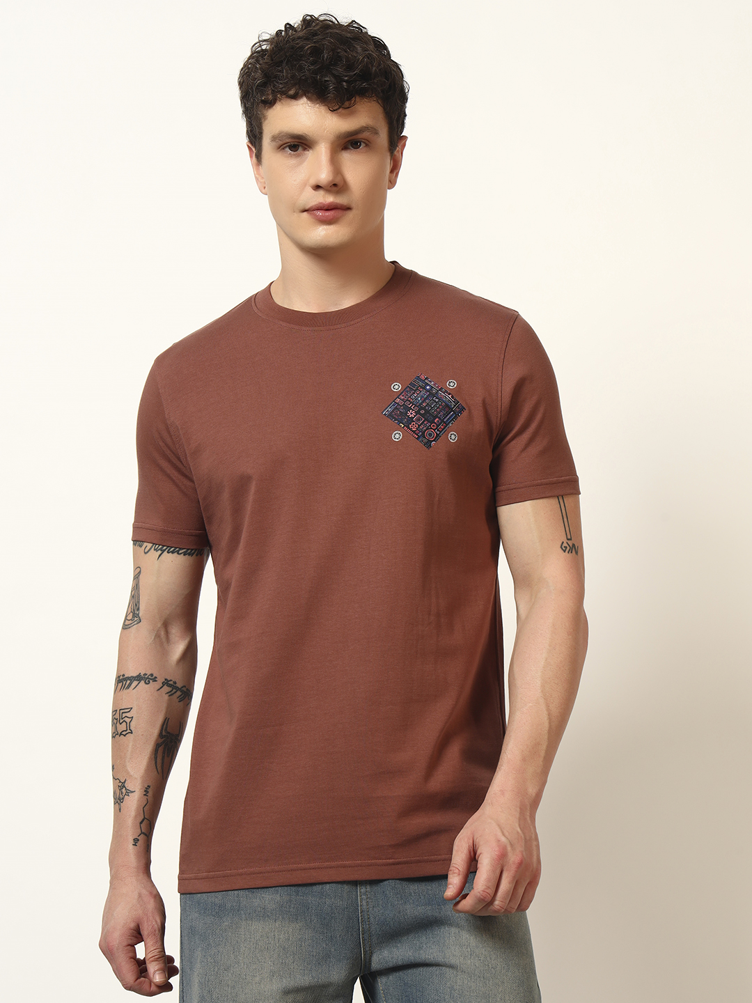 Oneway Men Printed Sinker - 100% Cotton Regular Fit Black Tshirt
