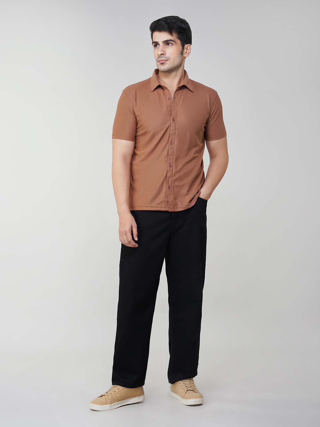 Upgrade your wardrobe with this sophisticated button-down polo shirt, crafted for the modern man who values style and comfort. Made from a breathable, lightweight fabric, this shirt offers a smooth, flattering fit with excellent shape retention—perfect for all-day wear.Designed with a sharp collared neckline and short sleeves, it blends the elegance of a formal shirt with the relaxed appeal of a polo.Â
