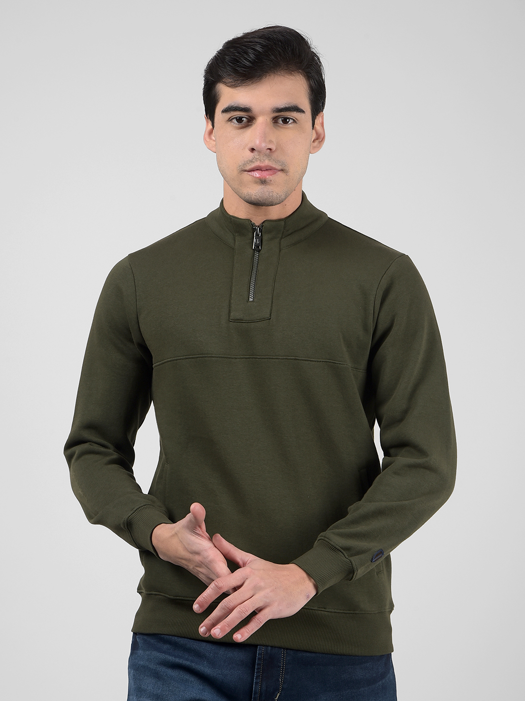 Enhance Your Winter Wardrobe With The Numero Uno Men'S Grey Full Sleeve Regular Brushed Fleece Mock Neck Sweatshirt. Designed For Both Warmth And Style, This Sweatshirt Features Soft Brushed Fleece Fabric For Exceptional Comfort During Chilly Days. The Mock Neck Design Adds A Contemporary, Sophisticated Touch, While The Regular Fit Ensures A Relaxed And Timeless Silhouette. The Unique Clay Color Brings A Fresh, Earthy Vibe, Making It A Versatile Choice To Pair With Jeans Or Chinos For A Polished Yet Casual Look, Perfect For Outings Or Cozy Evenings.