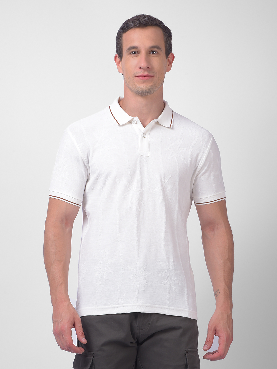 Numero Uno Men Grey Textured Polo Neck T-Shirt