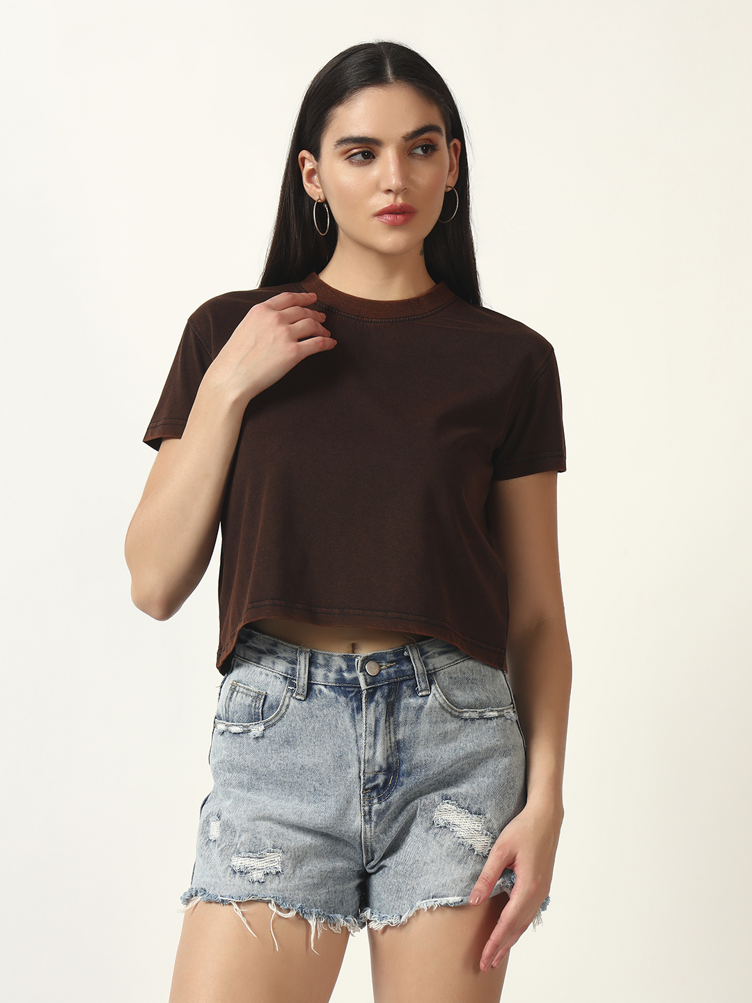 | PRODUCT DESCRIPTION | Stay effortlessly cool and comfortable with this Women's Acid Wash Cropped T-Shirt, designed for everyday wear with a modern twist. The clean, minimal silhouette paired with its earthy tone makes this tee a versatile must-have in your wardrobe. |