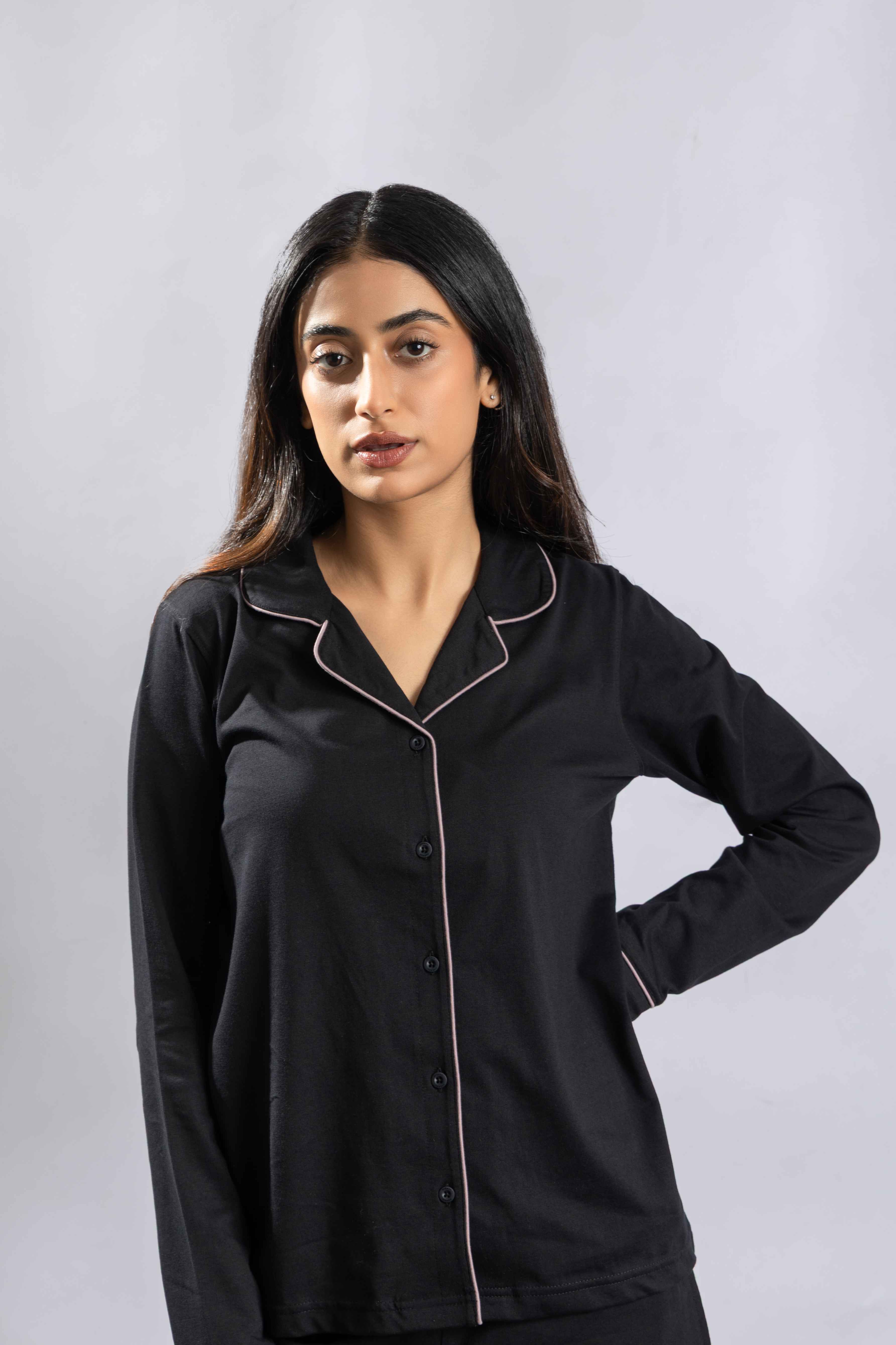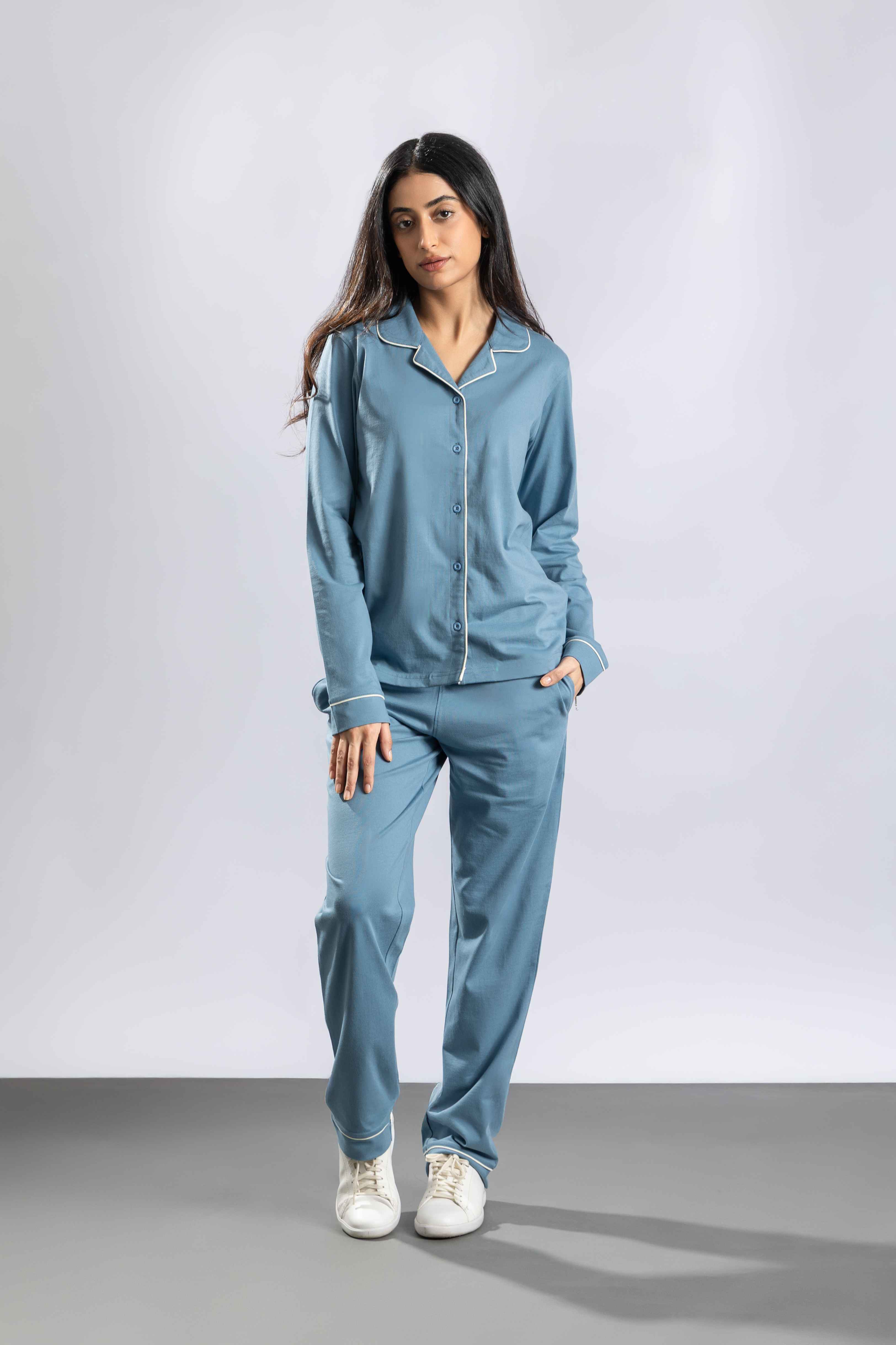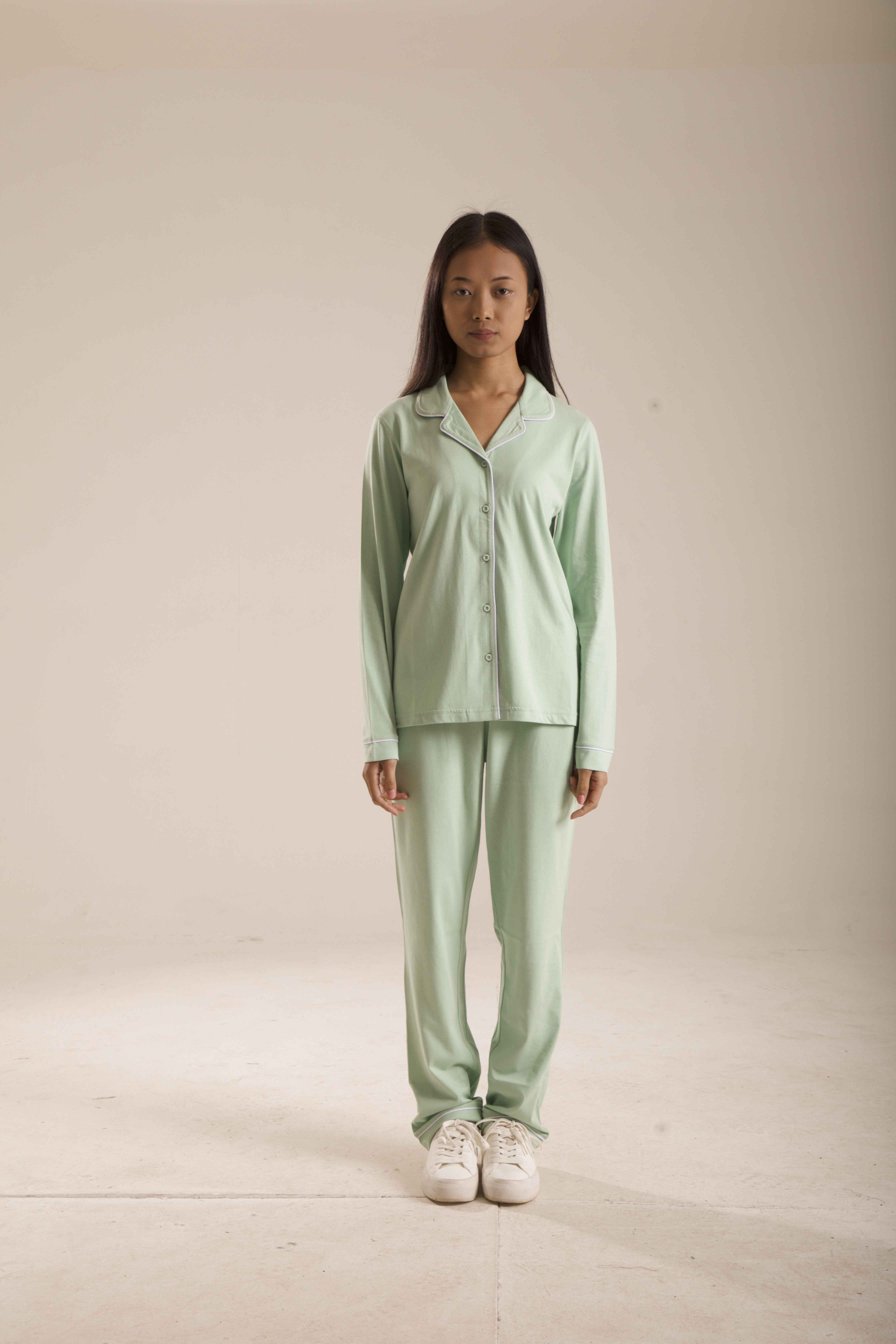 | PRODUCT DESCRIPTION | Experience the perfect blend of comfort and style with our women’s cotton pajama set. Designed with elegant contrast piping and a relaxed fit, this two-piece nightwear set includes a long-sleeve button-down top and straight-leg pants. Crafted from breathable, skin-friendly cotton fabric, it ensures a cozy feel for a restful night’s sleep or relaxed lounging at home. Ideal for all seasons, this lightweight pajama set is a must-have in your sleepwear collection. |