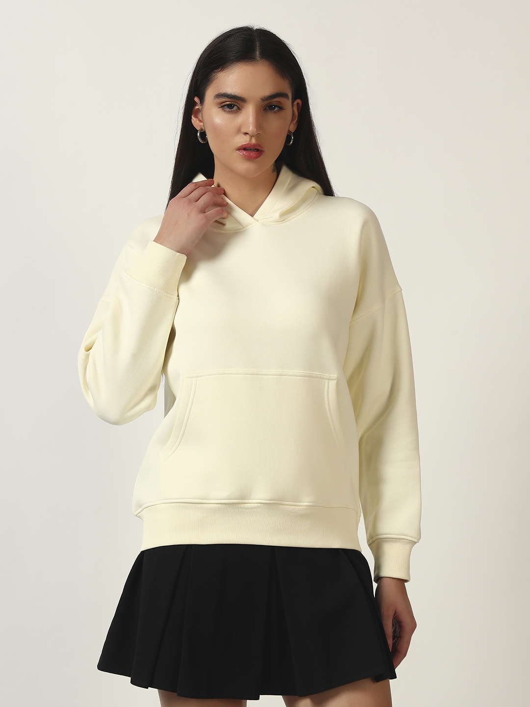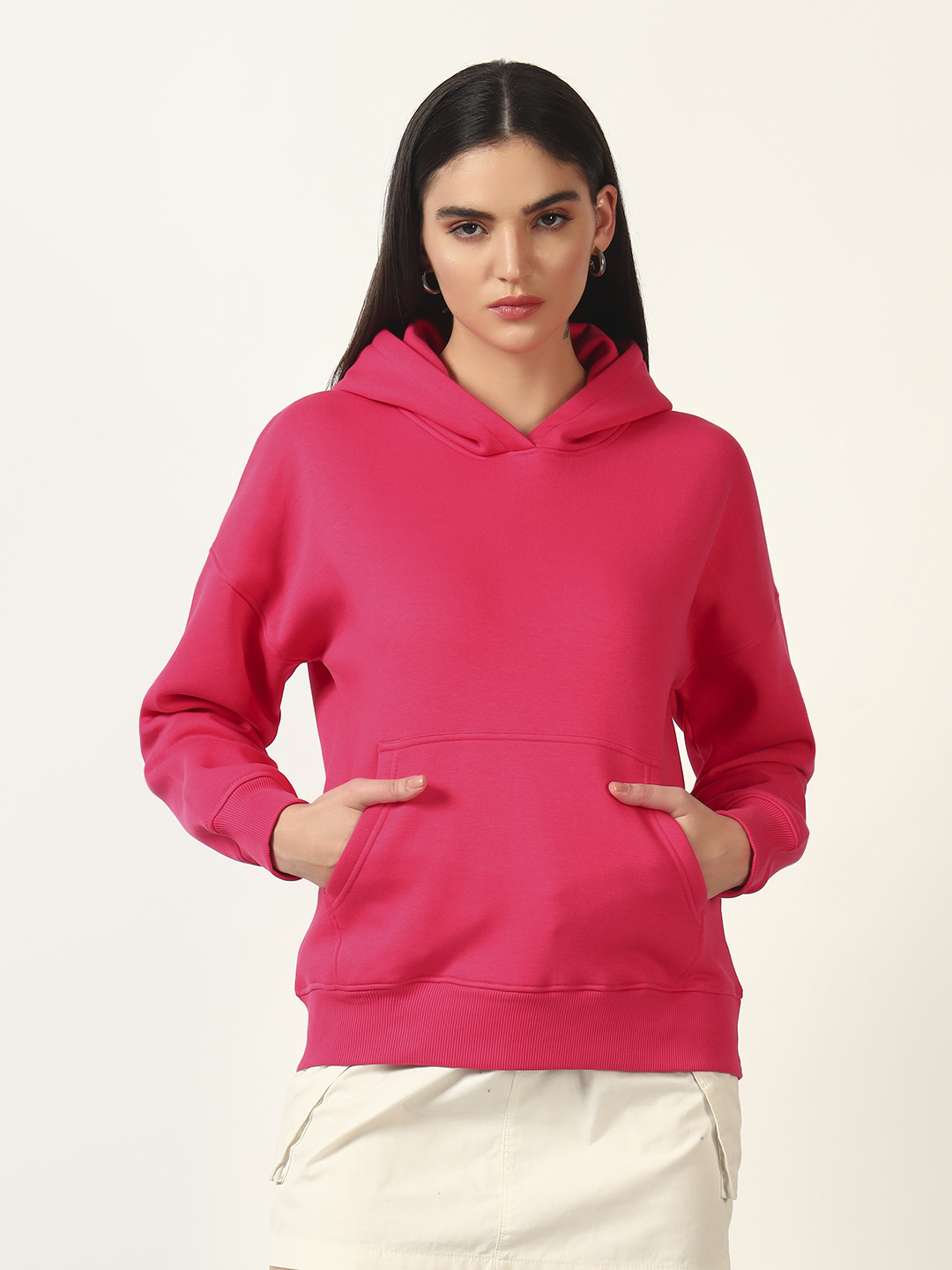 Elevate your casual style with this Women’s Solid Hoodie, designed for comfort and versatility. Crafted from soft, breathable fleece fabric, it offers a relaxed fit with ribbed cuffs and hem for a flattering silhouette. The spacious kangaroo pocket and cozy hood add a functional yet trendy touch — perfect for layering on cool days.